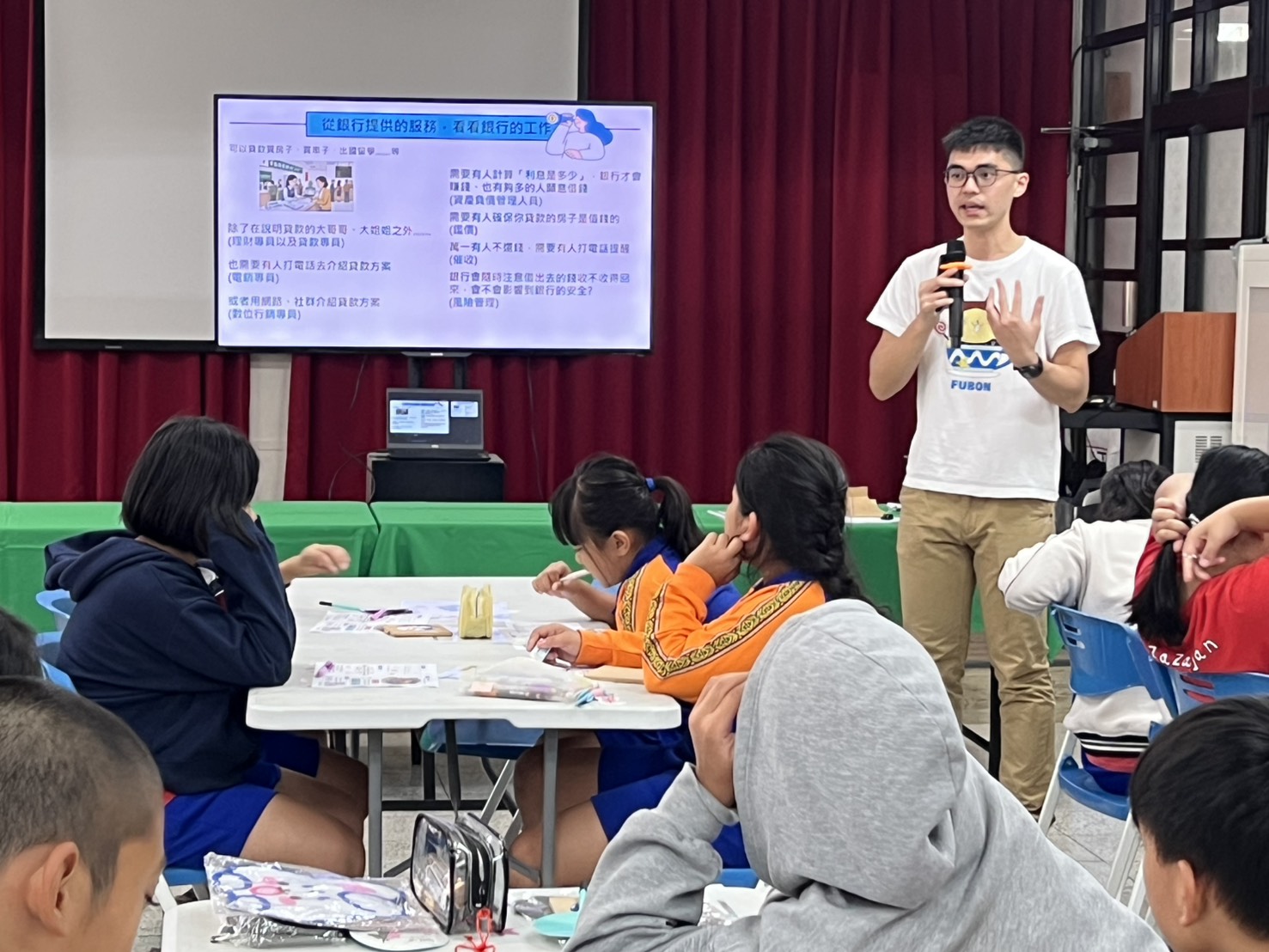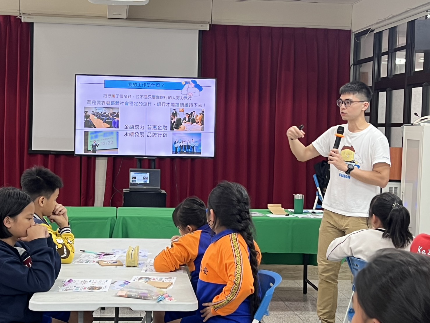 在「小小職人」的職涯探索面向上,許家豪副理也特別介紹了銀行內部多元的工作樣貌,包括第一線櫃檯服務、負責帳務與金庫的後勤作業、維護系統與 ATM 的資訊人員、協助客戶規劃資金運用的理財與貸款專員,以及把關風險的風險管理與處理法律爭議的法務等。講師並分享自己負責品牌與社會關懷相關業務的經驗,讓孩子看見銀行不僅有數字與報表,也需要企劃、公關與溝通協調等不同專長,打破「銀行工作就是在數錢」的刻板印象,幫助學童對金融業有更立體的理解。